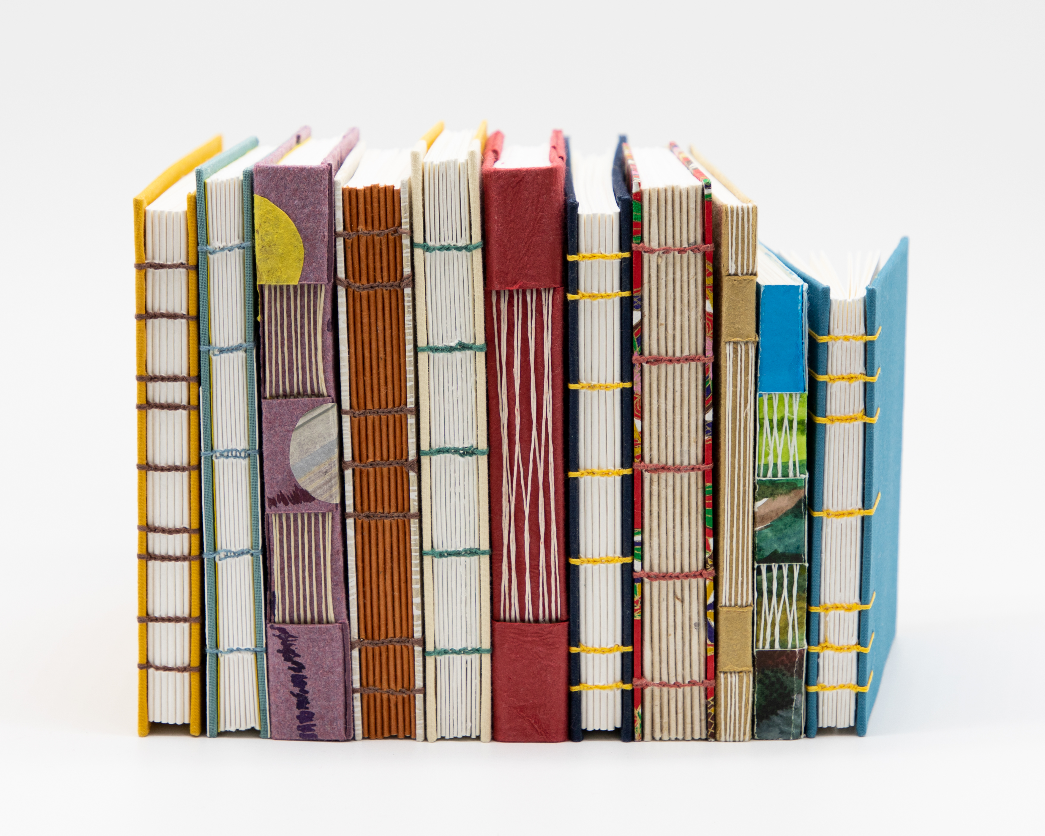 I have always enjoyed books. My family has a lot of books and I have built up my own collections over the years. Learning how to make a book from scratch opened a whole new world for me. It gives me great satisfaction in the process of cutting and folding paper, measuring, aligning, and sewing everything together, sometimes with a bit of drawing and painting. The bookbinding process keeps my mind active and moving.