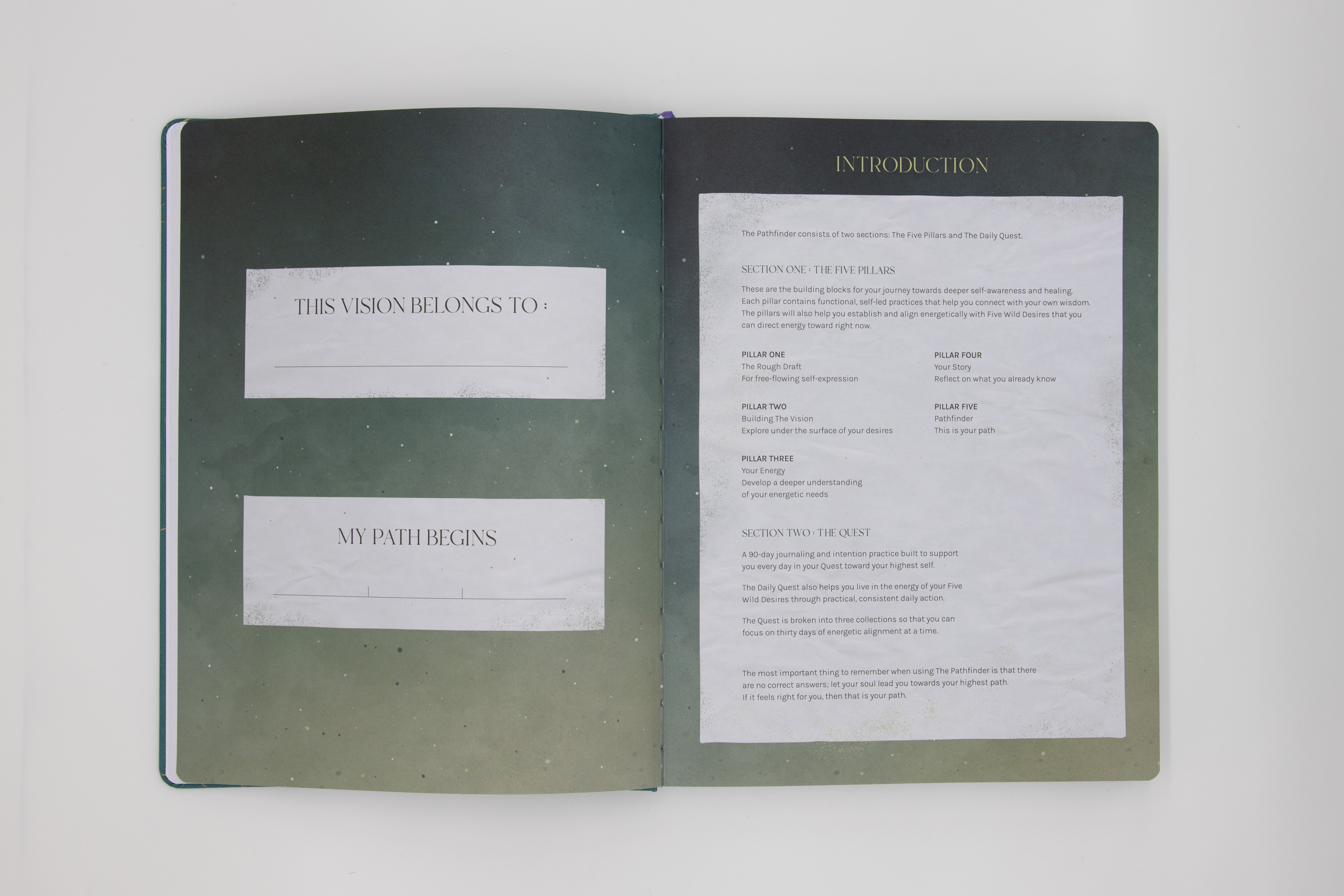 This book design project allowed me to expand my skills and creativity in design and illustration. The Pathfinder contains five chapters with different themes and purposes. It is designed to help the user explore their thoughts and feelings, connecting their inner world to their life. Each chapter has its own color scheme and main illustrations. The goal of the design is to create comforting, harmonious, as well as fun visuals that provide an engaging experience for everyone.